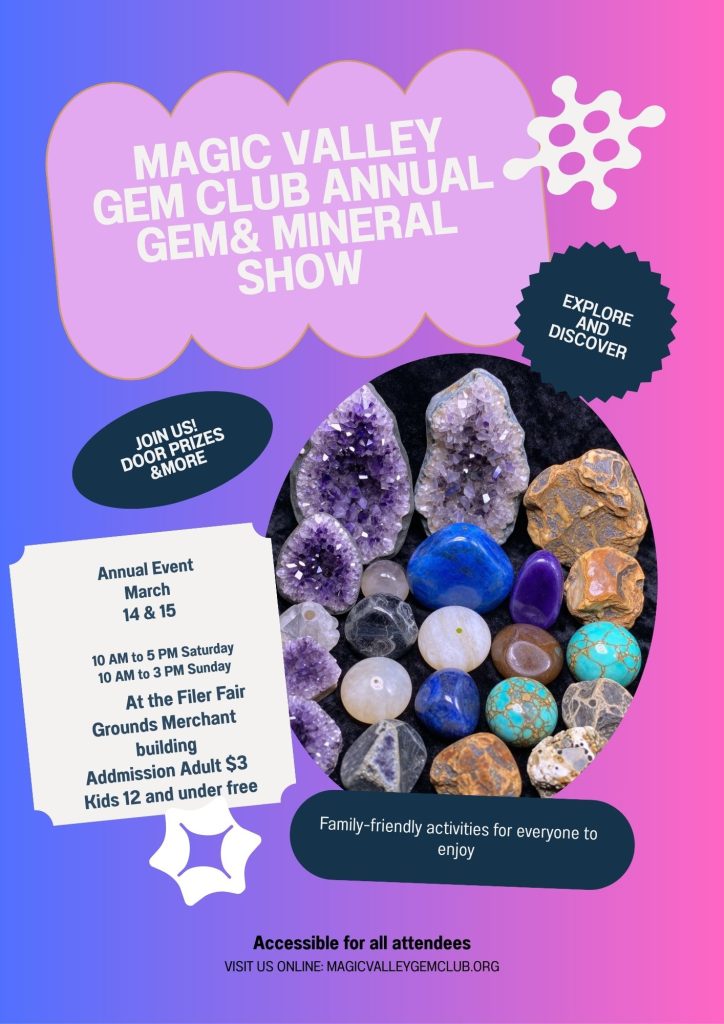This year’s Rock and Gem Show will be on 14 and 15 March. We will need volunteers on 13 March to help us set up for the show. Also, on the 15th to tear everything down. Please volunteer during the show to help us out. Hope to see everyone there.